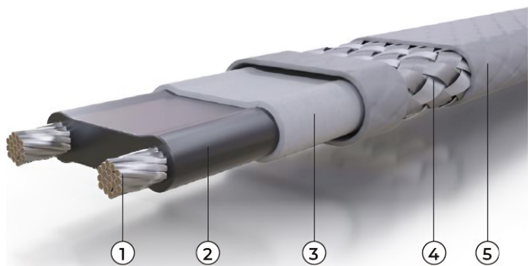 - Никелированные токоведущие медные жилы с поперечным сечением 1,3 мм2.